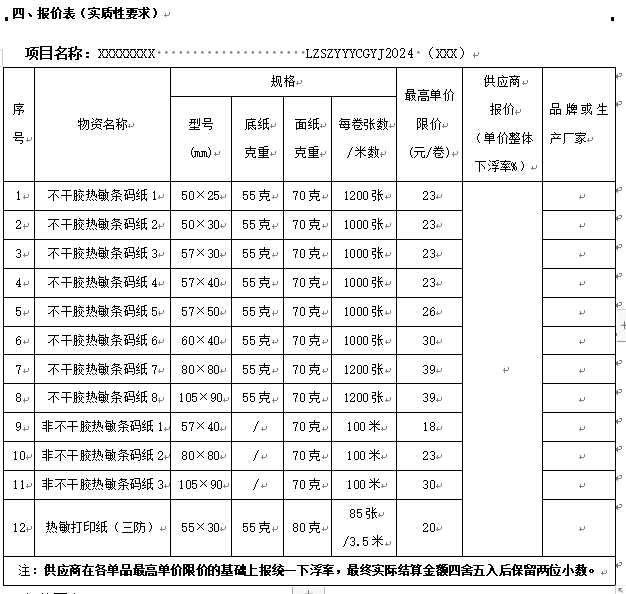 • 瀘州市中醫(yī)醫(yī)院熱敏條碼紙補充產(chǎn)品定點供應(yīng) 采購項目采購公告