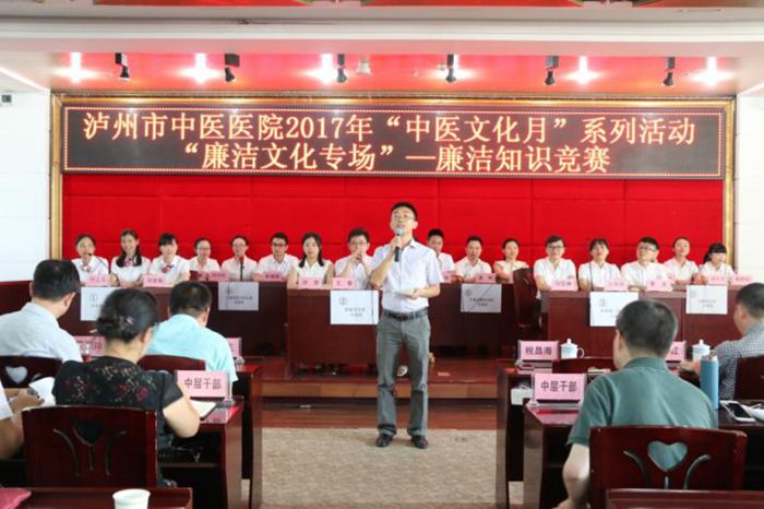 為進(jìn)一步加強(qiáng)醫(yī)院黨風(fēng)廉潔建設(shè)和醫(yī)德醫(yī)風(fēng)建設(shè),2017年5月27日下午,瀘州市中醫(yī)醫(yī)院在門診11樓學(xué)術(shù)廳開展 “中醫(yī)文化月”系列活動(dòng):“廉潔文化專場(chǎng)”——廉潔知識(shí)競(jìng)賽,市衛(wèi)生計(jì)生委監(jiān)察室主任稅昌海到場(chǎng)指導(dǎo)。醫(yī)院全體中層以上領(lǐng)導(dǎo)干部、全體黨員參加了此次活動(dòng)。