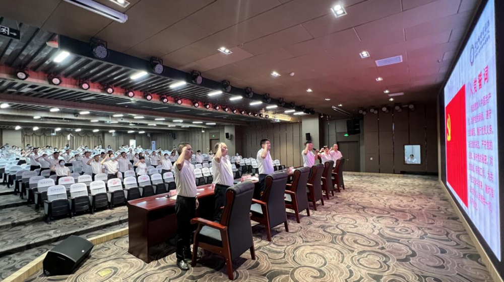 “我志愿加入中國共產(chǎn)黨,擁護(hù)黨的綱領(lǐng)……”在醫(yī)院黨委書記鄭海三的帶領(lǐng)下,全體與會黨員重溫了入黨誓詞。鏗鏘的誓言響徹會場,莊嚴(yán)地向黨的生日獻(xiàn)禮。