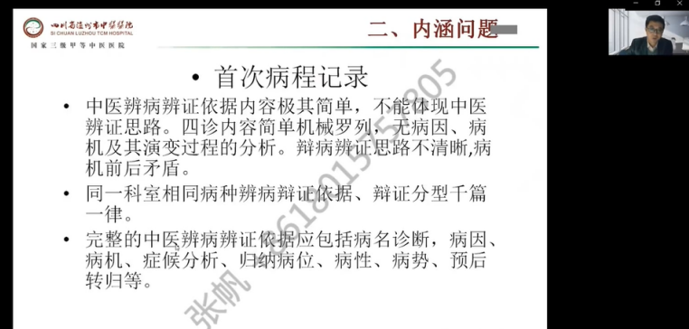 瀘州市中醫(yī)病案質(zhì)量控制中心(以下簡(jiǎn)稱質(zhì)控中心)11月15日,以線上會(huì)議的方式順利召開省級(jí)繼續(xù)教育項(xiàng)目—《基于DIP下的中醫(yī)病案管理專題培訓(xùn)班》。本次會(huì)議,我們榮幸的邀請(qǐng)到了四川大學(xué)華西醫(yī)院病案科莫春梅科長(zhǎng)、成都大學(xué)附屬醫(yī)院原質(zhì)控部楊建南主任、四川省中醫(yī)病案質(zhì)控中心劉鵬主任、瀘州市中醫(yī)醫(yī)院張帆主任等為我們進(jìn)行了“醫(yī)保DIP分值付費(fèi)、績(jī)效考核、中醫(yī)病歷書寫、病案首頁(yè)填寫規(guī)范、編碼主導(dǎo)詞填寫”等課程的精彩授課。