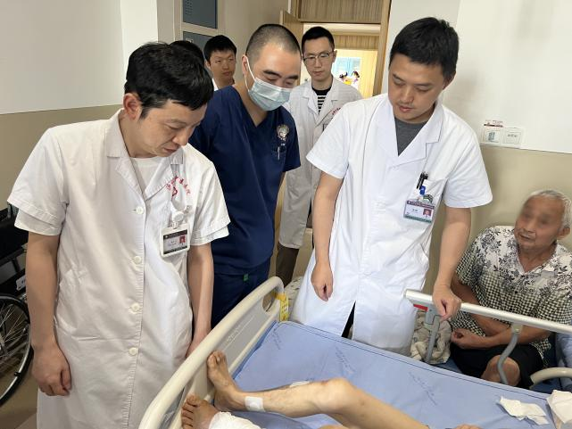 幾年前,一名61歲的女性患者因車禍致全身多處受傷,頭面部挫裂傷、顴骨骨折,左小腿脫套傷尤為嚴(yán)重,皮膚和軟組織大面積缺損,脛前肌腱大部分?jǐn)嗔?、缺損,左足背裂傷。在重點處理左小腿脫套傷及皮膚軟組織缺損時,面對比巴掌大的一個“血窟窿”,我們采取“乾坤大挪移”的方式,從患者自身大腿上游離取下一塊帶著血管的皮膚軟組織,將其移植到缺損的左小腿創(chuàng)傷部位,通過顯微鏡下精細(xì)操作接活細(xì)微的血管,我與團(tuán)隊成員密切配合,手術(shù)最終取得了成功,手術(shù)后患者逐步恢復(fù)正常行走,令人欣慰。