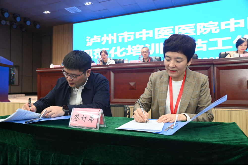 代表醫(yī)院與評估組組長一起簽署培訓(xùn)基地評估反饋意見書)
