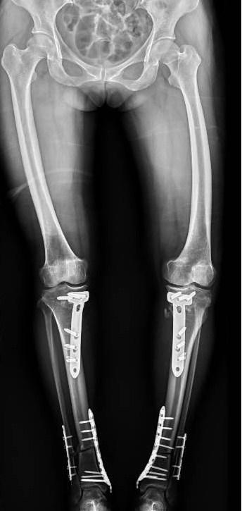面對這樣復雜且嚴重的病情,李彬并沒有退縮。他深知,對于董阿姨來說,這不僅僅是一次手術(shù),更是一次重生的機會。因此,他精心制定了手術(shù)方案:對雙下肢脛骨近端、遠端以及雙側(cè)腓骨遠端進行截骨矯形,并進行植骨內(nèi)固定。這樣的手術(shù)方案,無疑是對醫(yī)生技術(shù)的一次高難度挑戰(zhàn)!