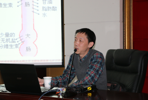 ??????? 內(nèi)二科副主任、副主任中醫(yī)師芶勇正在為“糖友”們進行健康講座