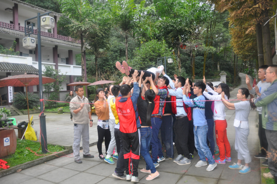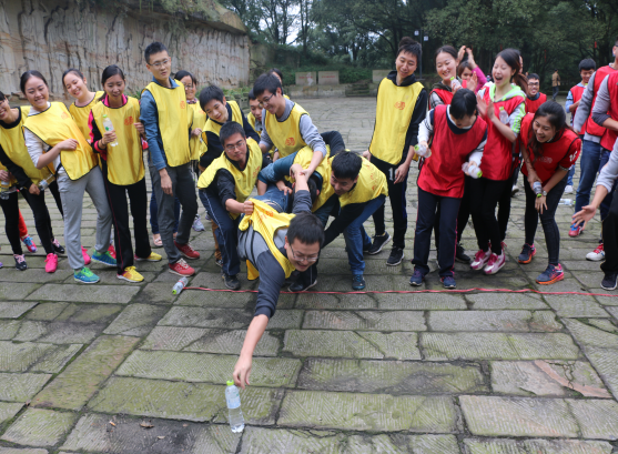 參加人員被分為紅隊和黃隊兩支團隊,通過集體討論,確定了各自的隊名、隊長和口號?;顒又?,大家相互鼓勵、相互幫助、團結(jié)一心、共同完成了破冰、群龍取水、穿越電網(wǎng)、信任背摔、 挑戰(zhàn)越障等一系列拓展項目,體現(xiàn)了濃厚的集體歸屬感和團隊意識。每輪項目結(jié)束后,大家都會在一起相互商討、爭相發(fā)言,分享親身體驗的過程和成功的喜悅,尤其是學會了如何去溝通,如何去克服心理障礙,如何突破自我去釋放正能量戰(zhàn)勝困難。