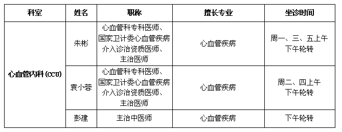 我院心血管內(nèi)科(CCU):床位設置50張,主要對心律失常、心力衰竭、心源性休克、心臟驟停、高血壓、冠心病、心肌疾病、心包疾病、先天性心臟病等心血管疾病開展診療工作。同時,科室還開展了心血管疾病的介入診治,如:冠脈疾病的介入診治、心律失常器械治療、心律失常導管消融、先天性心臟病介入治療。